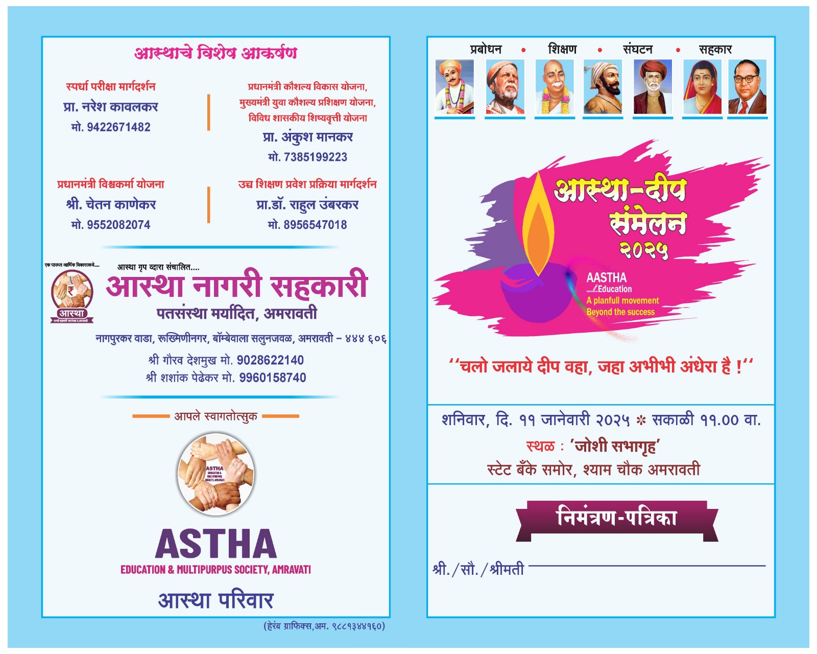 आपल्या महाराष्ट्राला शैक्षणिक क्षेत्राचा गौरवशाली वारसा समृद्ध वारसा लाभला आहे. आस्था हाच वारसा चालवित आहेत. समाजाच्या तळागळात जाऊन समाजातील गरजू विद्यार्थ्यांना शोधून त्यांच्या अडचणी सोडविण्यासाठी तत्पर आहे. हीच आहे विचारधारेची ताकद. हाच आहे कर्मवीर भाऊराव पाटील, क्रांतीज्योती सावित्रीमाई, शिक्षण महर्षी डॉ.पंजाबराव देशमुखांचा वारसा.